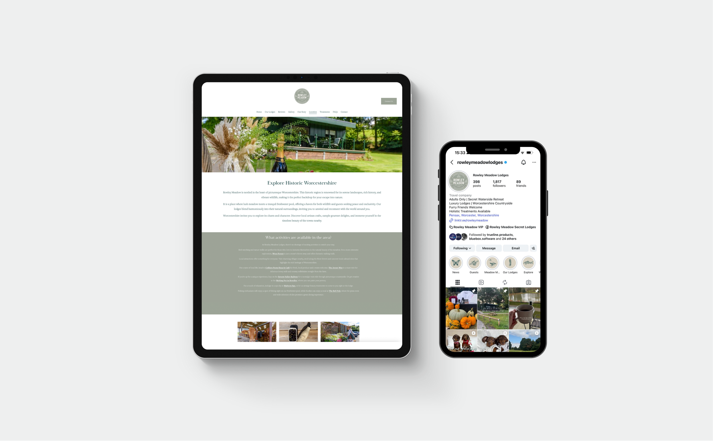 From early conversations around vision and positioning to shaping a brand that truly reflects the stunning Worcestershire location and the exclusivity of the experience, Rowley Meadow Secret Lodges has been a collaborative partnership in every sense.